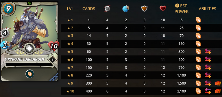 Hi Splinterlanders, I am really exctited about the new reward cards and want to write some posts about them as they come out of loot chests. I got my first one in a bronze chest on one of my alt accounts this morning, Drybone Barbarian.