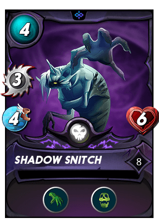 The card at level 8 was most successful during the top Gold league (modern) battles today, being a member of the winning team for all 3 games in which Shadow Snitch appeared.- Shadow Snitch did best when positioned as the secondary tank (2nd slot) in the team lineup, where it saw 3 wins.