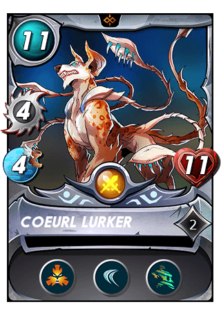 The card at level 2 achieved the most success in today's top Gold league (wild) battles, being a member of the victorious team for 3 games.- Coeurl Lurker performed ideally when placed at the rear of the team, where it saw 2 wins.