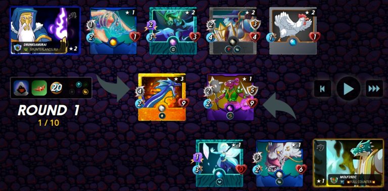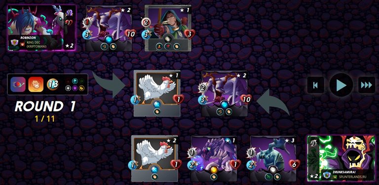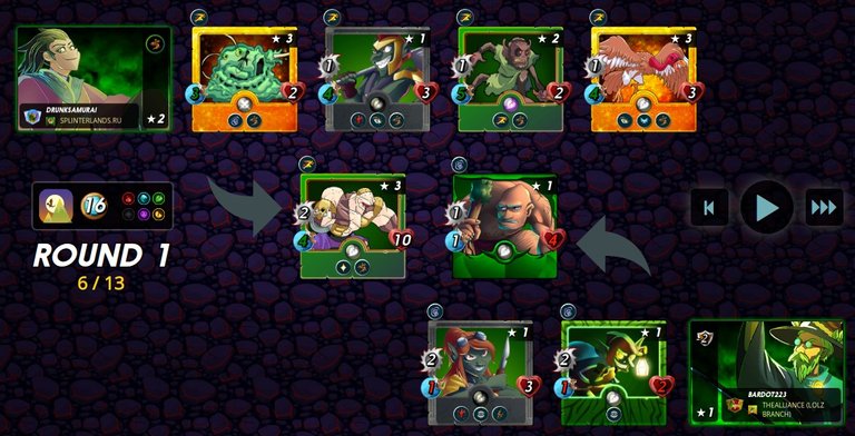 In the first fight with little mana (which was a feature of this round) I decided to go the way of more inexpensive cards and used my favorite summoner MYLOR CROWLING with FLESH GOLEM, a fast gladiator BERTROL GOBSON, putting them to help SCREECHING VULTURE. For a stronger effect I spotted the enemy with my CREEPING OOZE, and accelerated my cards with BROWNIE.