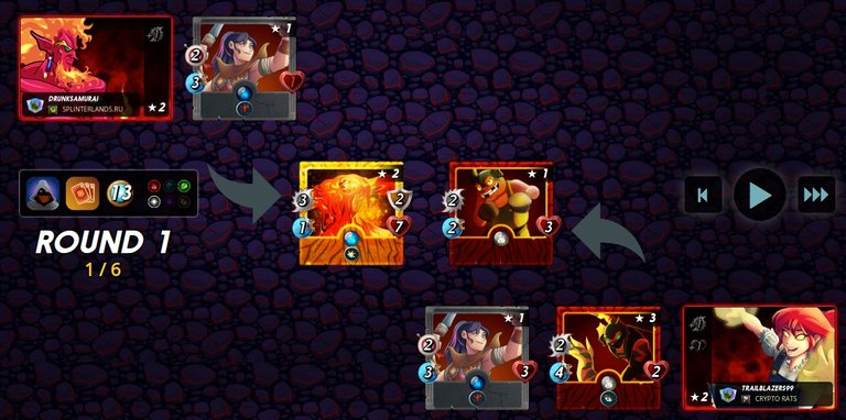 The enemy chose a powerful GRUM FLAMEBLADE, but my fighters and their swift attack did their job :)