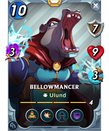 Today I'll be talking about "Bellowmancer," a neutral legendary monster with a mana cost of 10. It belongs to the "Neutral" element, is from the "Conclave" set, and its lineage is "Ulund."