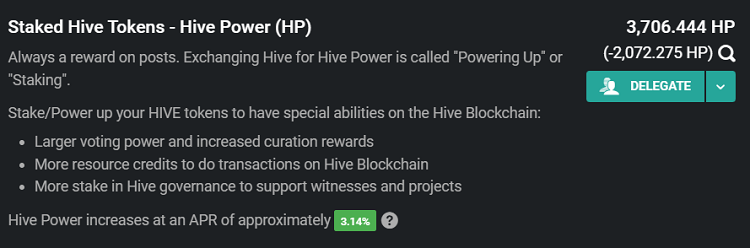 For example, at this moment my CRs are at 100% and this has a lot to do with the amount of HP I have, although an account with 20HP can easily do its rental actions. Also don't forget that there is the option to delegate RC: