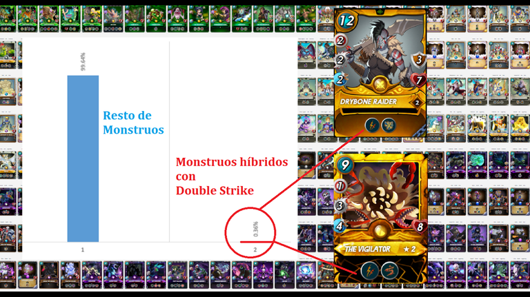 I won this legendary at the moment I least expected it and with silver quality chests, without a doubt I was very lucky to get this legendary, very exclusive, because together with THE VIGILATOR they are the only two monsters in the hybrid attack game that have the DOUBLE STRIKE ability. Let's do a little statistics.