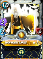 La presencia de HIGH PRIEST DARIUS será fundamental en las filas enemigas, por la contundencia de ataque del monstruo y el poder de resucitar al primer monstruo que muera. Una batalla de 38 puntos de mana, y un rival que usa 21 de esos puntos solo en dos monstruos, una decisión que no me aprece del todo, ya que este t pode jugadas las recomedaria mas en batallas dode la variable mana sea mayor a 50 puntos.