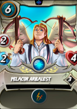 Imagen 01:PELACOR ARBALEST la carta temática de la semana. Fuente: Splinterlands, Splintercards adaptada por @eliaschess333