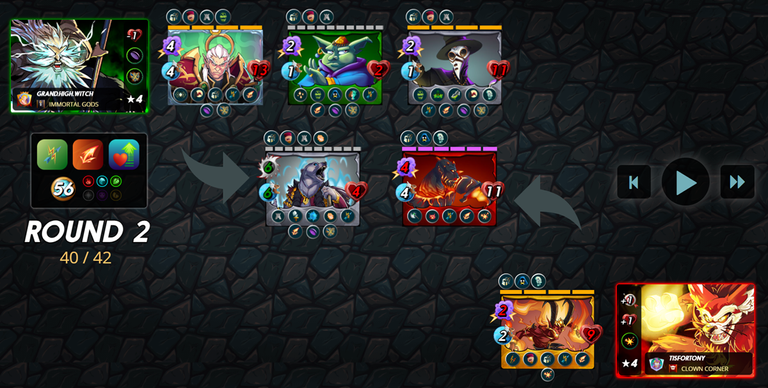 El maestro @grand.high.witch decidió invocar a sus monstruos con el poderoso invocador IMMORTALIS, una elección super acertada dado que es muy probable la presencia del ataque a distancia para aprovechar el SCATTERSHOOT, y mas probable aún la presencia de la magia porque el RETURN FIRE quita un tanto las ganas de usar monstruos arqueros.