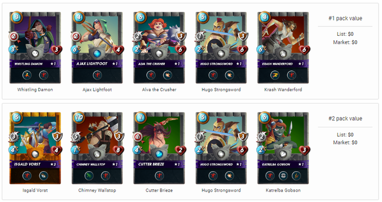 First pack contained 4 common and one rare cards. Second pack contain one Gold Foil, one are and three common cards. Other remaining packs also contain 3 common and rare cards each.
