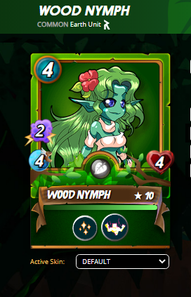 Hola amigos espero que estén muy bien hoy vengo a participar en el desafío de la semana de splinterlandas, en esta oportunidad el desafío es con el monstruo WOOD NYMPH, este monstruo es de la edición recompensa, podríamos llamarlo la edición recompensa antigua, el WOOD NYMPH es una carta bastante versátil, ya que tiene 2 habilidades bastante útiles para el equipo tierra como lo son Tank Heal que cura el monstruo en primera posición y Strengthen que aumenta 1 de vida a todo el equipo amigo, lo fuerte de estas habilidades en el equipo tierra es que unido con la habilidad del invocador que también aumenta 1 de vida todo en conjunto produce un equipo con mucha vida y recordemos que la habilidad de Tank Heal cura dependiendo de la cantidad de vida total que tenga el monstruo, es por esto que las habilidades de WOOD NYMPH son perfectas para este equipo.