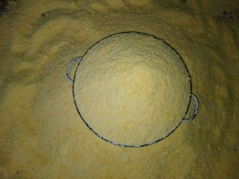So, we started up by setting the fire and sieving the grinded and squeezed cassava