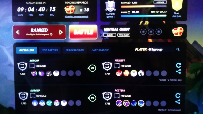 I'm on a nice Win Streak in my Splinterlands gaming tonight! I started with my starter account and won a lot. Now I'm on my middle account and also winning!