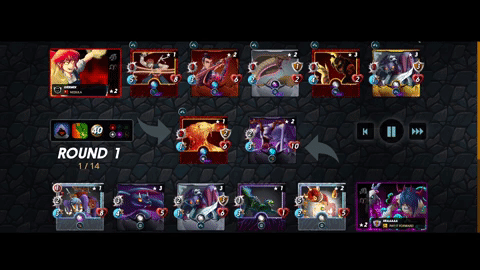 Since the rulesets are Silence Summoners and Up Close & Personal, this is going to be a pure melee match-up. The first thing that I thought of was picking a monster with Thorns to counter melee, and since the only monster that has Thorns in my deck was Death, I picked a Death splinter. Aside from the Thorns, I picked monsters with the abilities Retaliate and Demorolize to further counter melee monsters. After getting them, I need my own damage dealing monsters that will be able to use their physical damage with this ruleset. Therefore, I went for Sneak monsters.