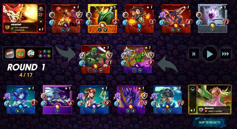 My plan was to use my favorite low mana cost lineup with LORNA OF SHINE, STITCH LEECHSNEAK*, range damage monster, and PELACOR CONJURER as a tank, but I lost because I forgot one of the most important abilities in this specific ruleset. I thought I had a good lineup, but I forgot that one of the best abilities in this LOST MAGIC ruleset is SHIELD, which reduces the damage taken from physical damage monsters. I lost to ALVA THE CRUSHER singlehandedly, and with her BLOODLUST ability, my low mana cost monsters boosted her even more.