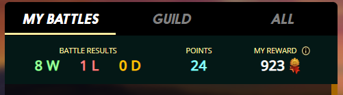 At the conclusion of my battles, I had 8 wins and 1 loss. I got two free wins because my opponent FLED.