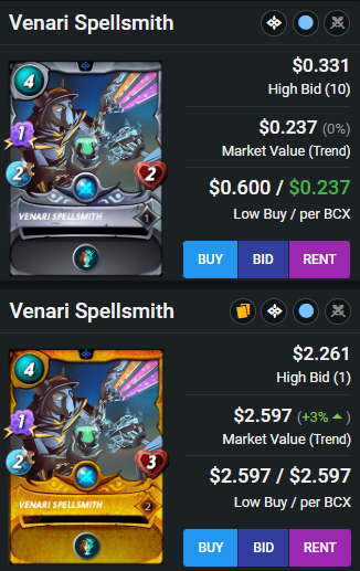 Hello everyone, it's time for another weekly battle change post! This time it's for VENARI SPELLSMITH, this card is being used a lot by BOTs, which is why the price of this card is increasing and corresponding to the rental fees, I rarely use this card but it's a very good card to have.