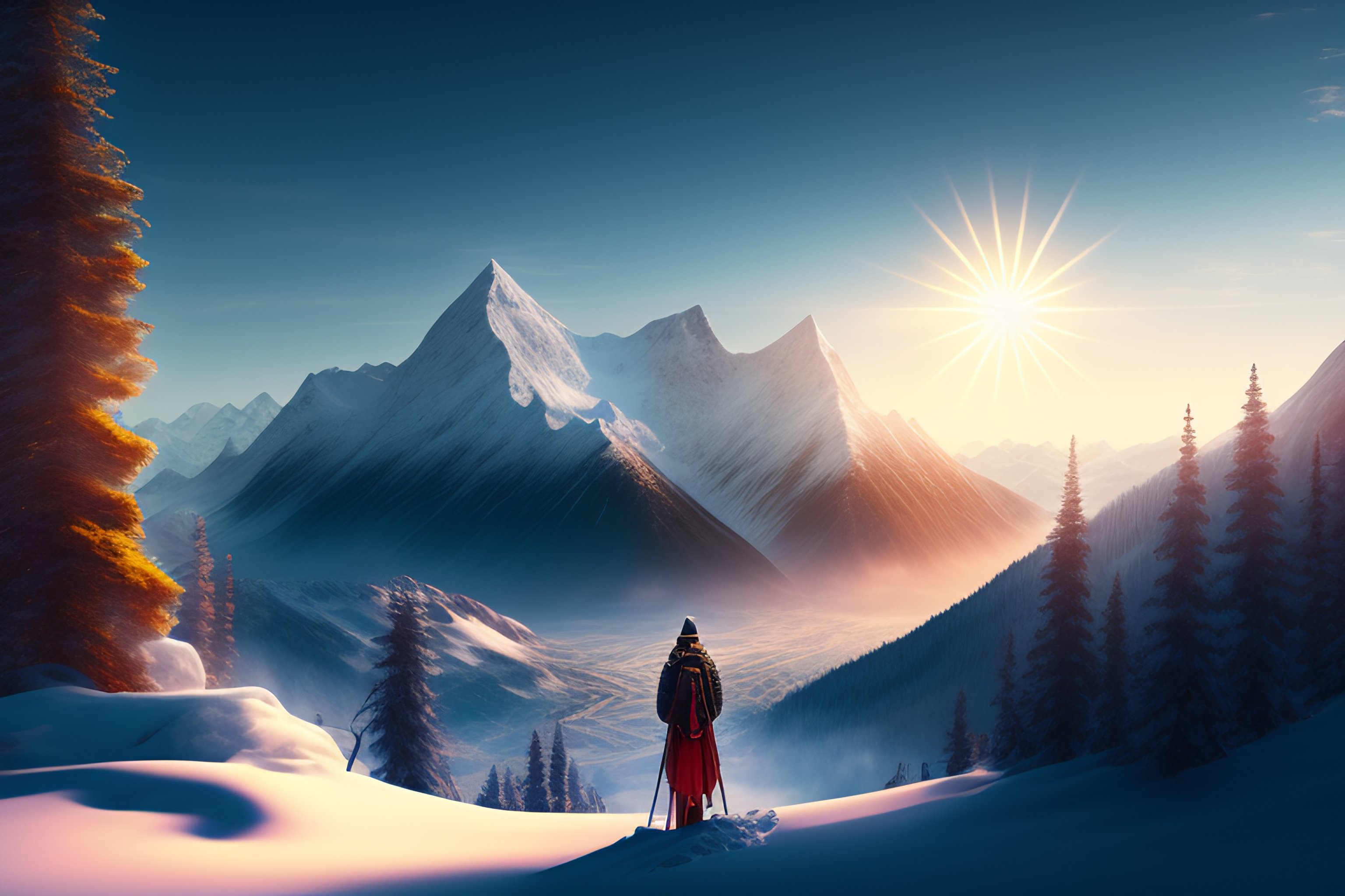 Hello Hivers . I hope everyone is doing well. I have created a new landscape .Here a monk is standing in front of an icy mountain . While using the lexica.art AI today, I came across this image link, which inspired me to create my new landscape. Although no monks are used in this image, I did use vector art of a monk in my landscape.