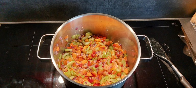 After walking back home, I made soup as preparation for dinner, it's looking really colorful and healthy isn't it!?