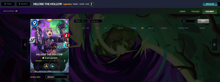 Heloise the Hollow is an Auction Promo card that is a very strong card that comes with a Taunt, Opportunity, Spite, Soul Siphon and Last Word abilities. The combination of these abilities is very powerful, I found the fact that it self resurrects and is usually resurrected with the help of other cards in combination with Spite ability where she has 100% chance to counter attack when defeated for eight melee very hard to play against. Because of the Spite and Soul Siphon abilities it is basically a force multiplier card.