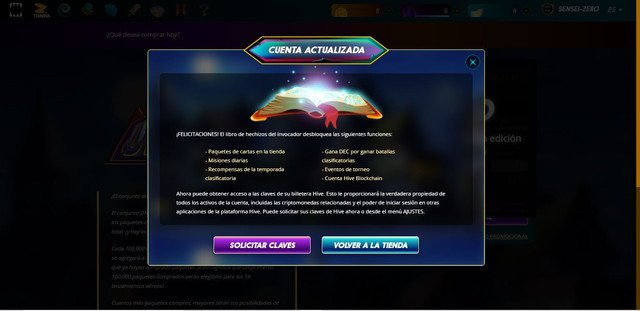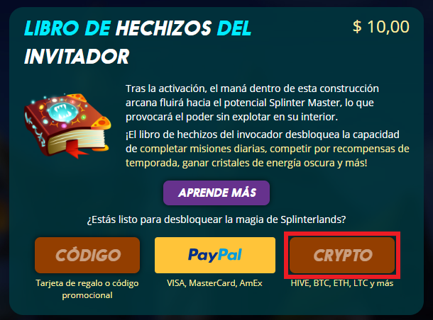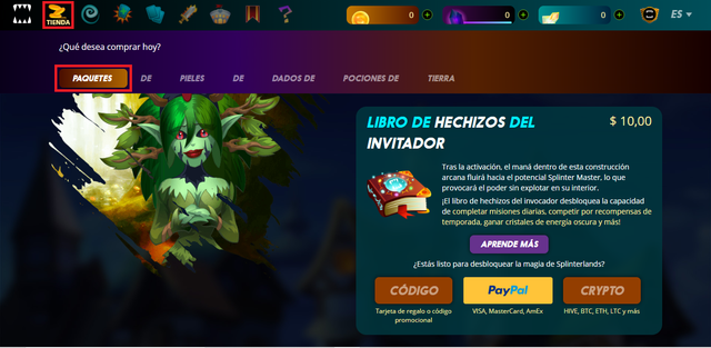 Nota: Si es tu primera vez que que entras en el juego y te vas a registrar, te invito a que te metas con mi enlace de referido https://splinterlands.com?ref=szero ya que me darán $0.50 USD por tu compra de libro, no es mucho, pero me ayuda como pequeña propina y con el volumen se hace mucho.