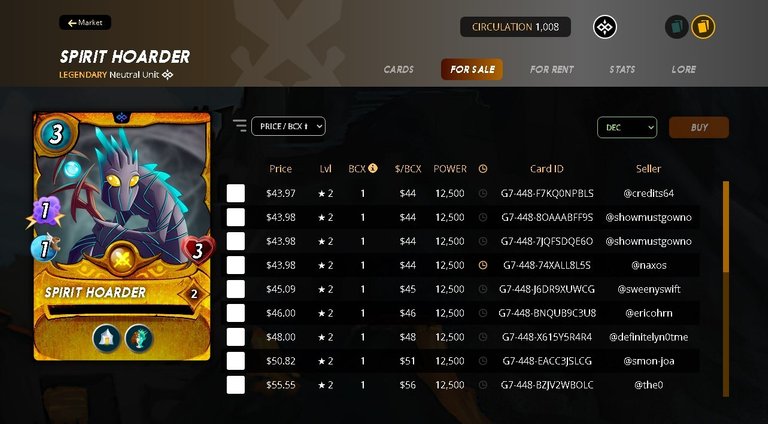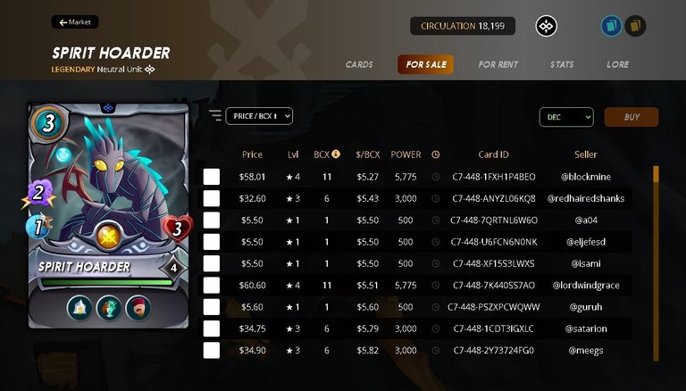 Regular foil singles are starting at $5.50, while combined versions can be bought for a bit cheaper as usual. Currently there is a maxed-out copy at the market for $58.01 ($5.27 per BCX) and a level 3 copy for $32.60 ($5.43 per BCX).