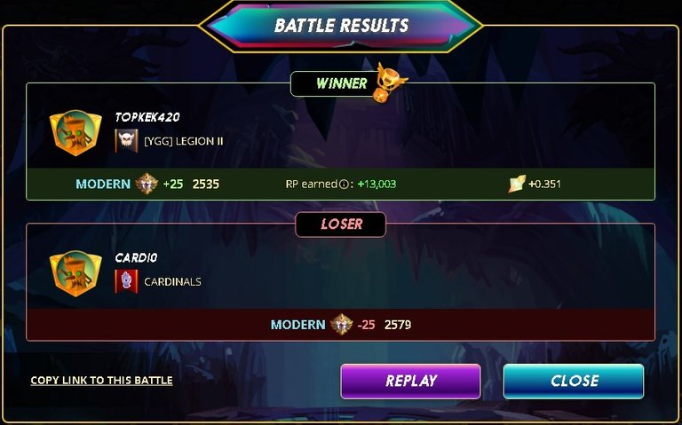 Both me and my opponent had the same idea about our lineups. Grandmaster Rathe proved to be a stronger summoner for sustaining teams with his defensive capabilities and Spirit Hoarder proved to be more useful than the Uraeus that he brought to the battle. I'm also impressed with how much damage iziar was able to soak up with double triage support.