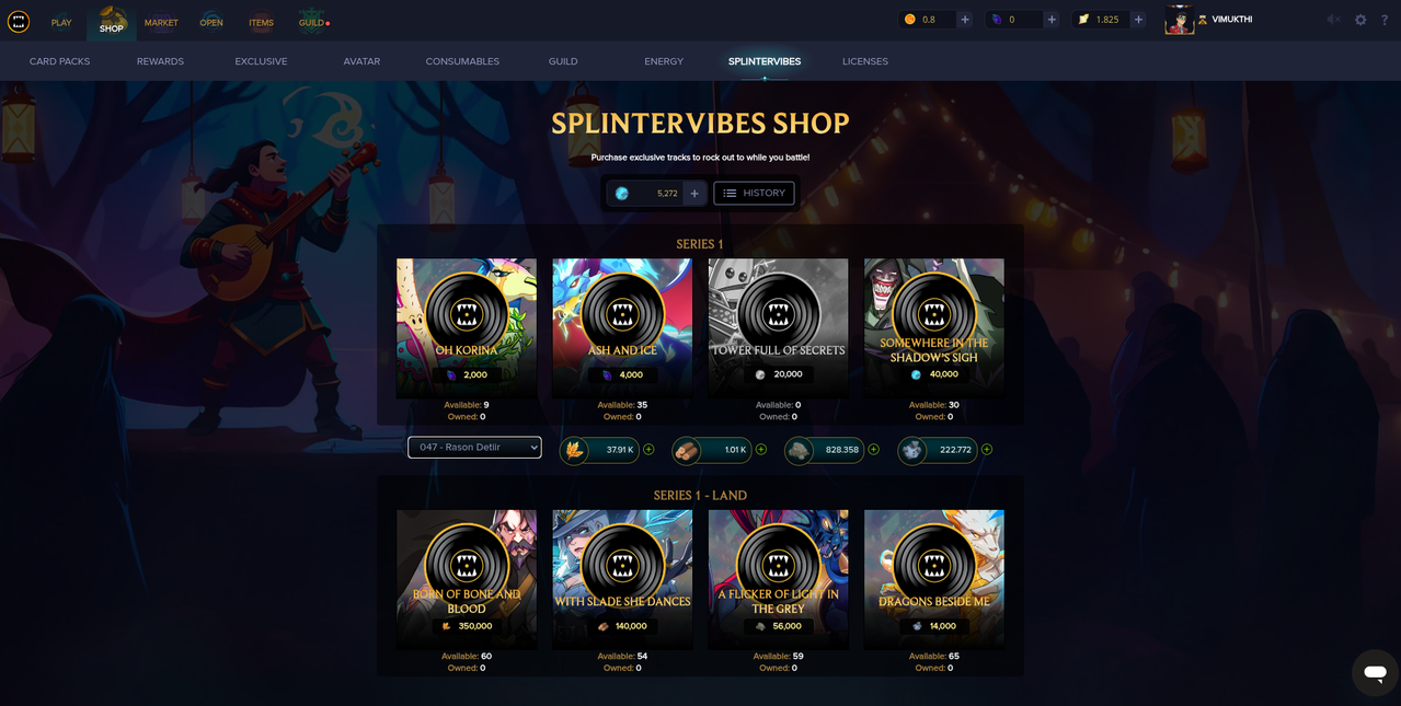 Splintervibes is our latest addition that bring in Music NFT to the game. These are assets players can own (therefore trade) and augment their gameplay experience with. Music NFTs do not change the core mechanics of the game; yet function as an excellent resource sink for various in game resources.
