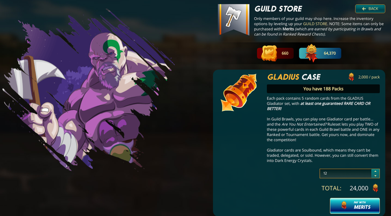 There is no point saving up MERITS! I cannot sell them for anyone. There are no other use cases for MERITS. They are there to be used to get more Gladiators for the Collection. With the ability to purchase Blood + Power Stones with MERITS, there is no reason to hold off buying and opening as many Gladius Cases as you can based on the simple calculation shown previously.