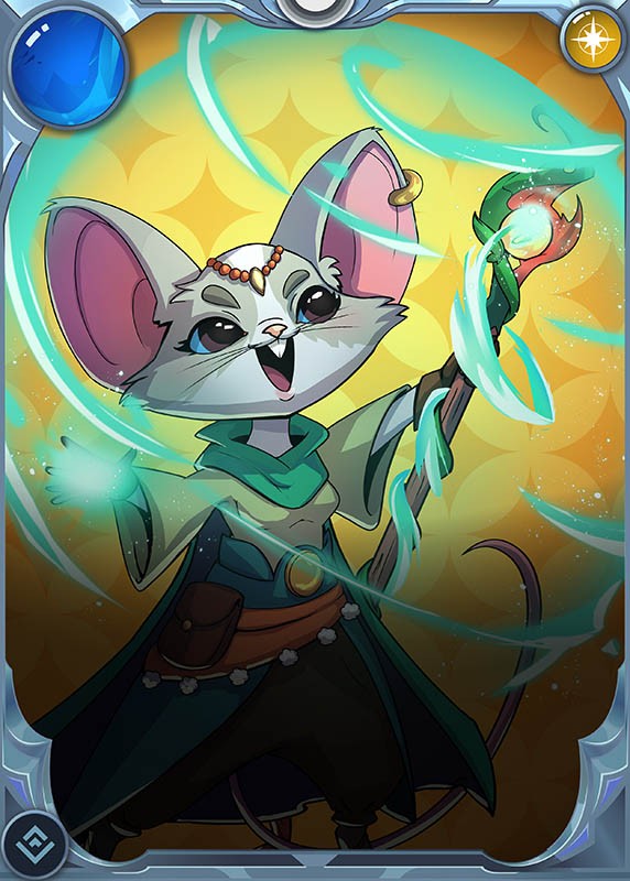 There is a monster that looks exactly like a mouse and has big whiskers and if you look at it carefully, you will see its one shining tooth and its big fangs are spread out and it has a magical magic attacking power in its hand and its other hand also has magic attacking power and it looks like it is ready to make a magical attack on its opponent and it is wearing a big Gown dress and it must have looked at you in a very enthusiastic way in the picture. If we talk about Meriput Magician and the features of this card, then this card has healing power, but apart from that, it also has many powers hidden inside it. First, it restores the health of the unit in its friendly lineup that is facing its opponent on the front line. Then it also makes a magic attack on the opponent and its magical attack is very fast and that attack is magical. And it affects the lineup of the direct opponent. This card belongs to the life unit and is a common card and if its value is seen in the market, which I have not checked yet, but I am sure that its price will be less than one dollar and this is a card worth less than one dollar and I think that every new player's lineup should have this card in the collection, no matter what the mana cap of the battle is, big or small, this card fits very well in every battle lineup .