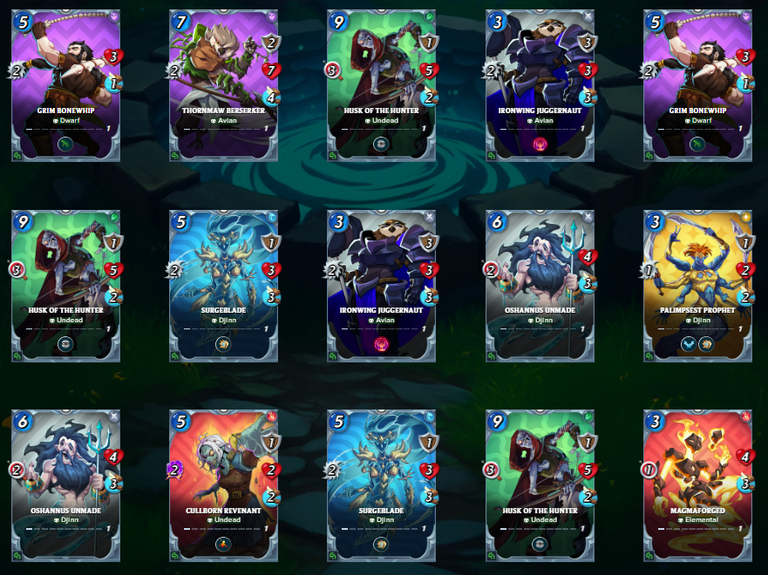 (nur spielbare Karten ohne vermieten, Land usw.)