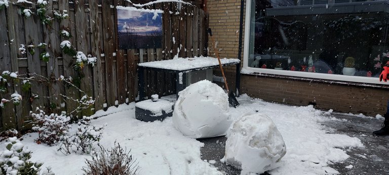 We both were rolling a ball and when mine was about 80cm wide I rolled it into our backyard and my daughter, rolling a little bit smaller but still decent sized ball asked me whether I thought about how to get this one on top of the bigger one, and actually I didn't!