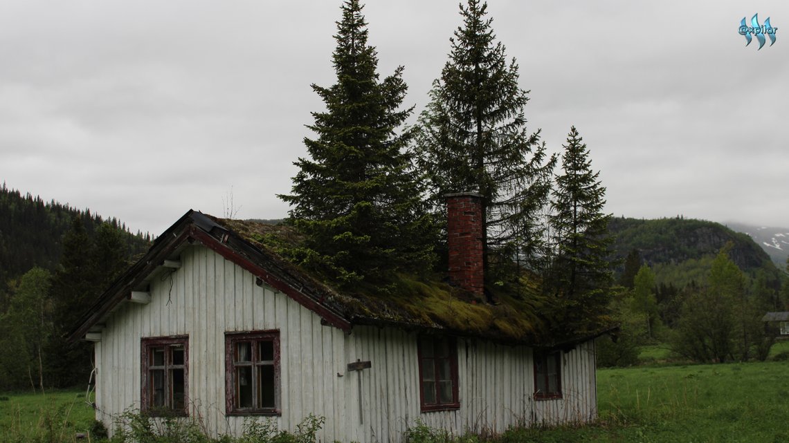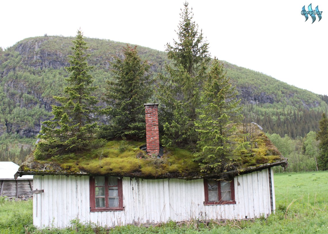 There are grass roofs on some houses in Norway, but they do not allow trees to grow so large